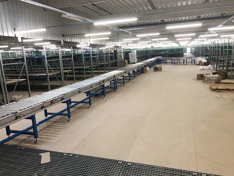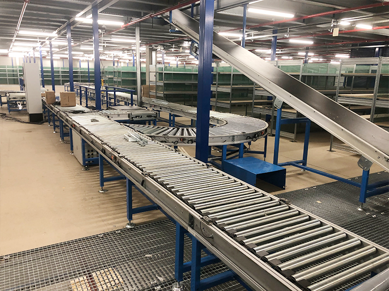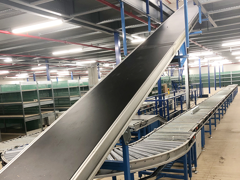 전자 상거래 창고 컨베이어 분류 라인은 전자 상거래 창고의 운송 시스템입니다. 컨베이어 라인에는 1 층에서 3 층의 인바운드 라인뿐만 아니라 아웃 바운드, 포장 및 3 층에서 1 층에서 라인을 분류합니다. 직선 롤러 컨베이어, 경사 벨트 컨베이어, 곡선 컨베이어, 측면 전송 기계 및 스윙 휠 분류 기계가 특징입니다 .