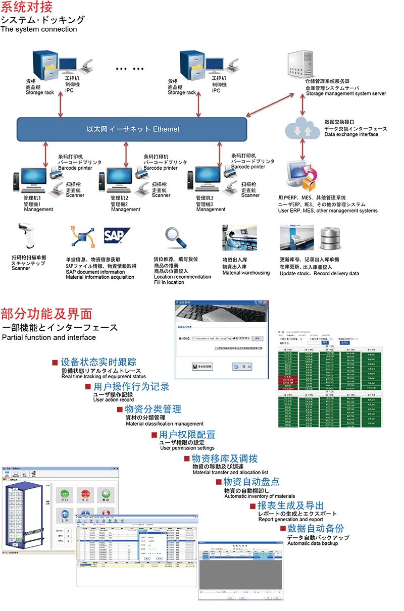 이러한 솔루션의 중심에는 회사의 독립적으로 개발 된 창고 관리 시스템 (WMS)이 있습니다. 이 고급 시스템은 현대식 창고의 복잡성을 관리하는 데 강력 할뿐만 아니라 유연합니다. 고객의 특정 요구 사항에 따라 조정 및 스케일링 할 수 있으며 소규모 운영 및 대규모 기업 모두를 지원할 수 있습니다. WMS는 ERP, MES 및 SAP와 같은 다른 비즈니스 시스템과 완벽하게 통합되어 비즈니스에 운영 관리를위한 통합 플랫폼을 제공합니다.