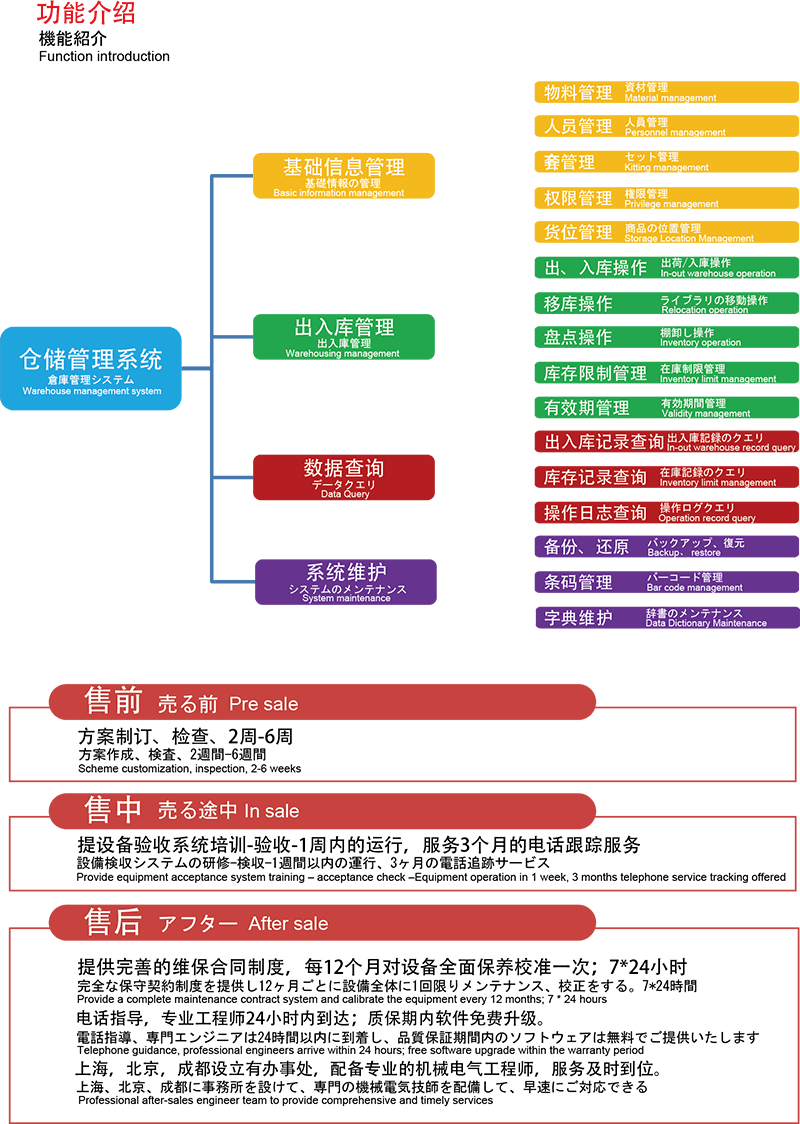 Wuxi Huiqian의 포괄적 인 엔드 투 엔드 서비스에 대한 약속은 고객이 고급 기술뿐만 아니라 시스템 수명주기 전체에서 지속적인 지원을받을 수 있도록합니다. 초기 계획에서 시스템 설계, 구현 및 정기 유지 보수에 이르기 까지이 회사의 전용 팀은 고객과 긴밀히 협력하여 원활한 통합 및 지속적인 최적화를 보장합니다. 자동화 된 창고 관리 시스템 .