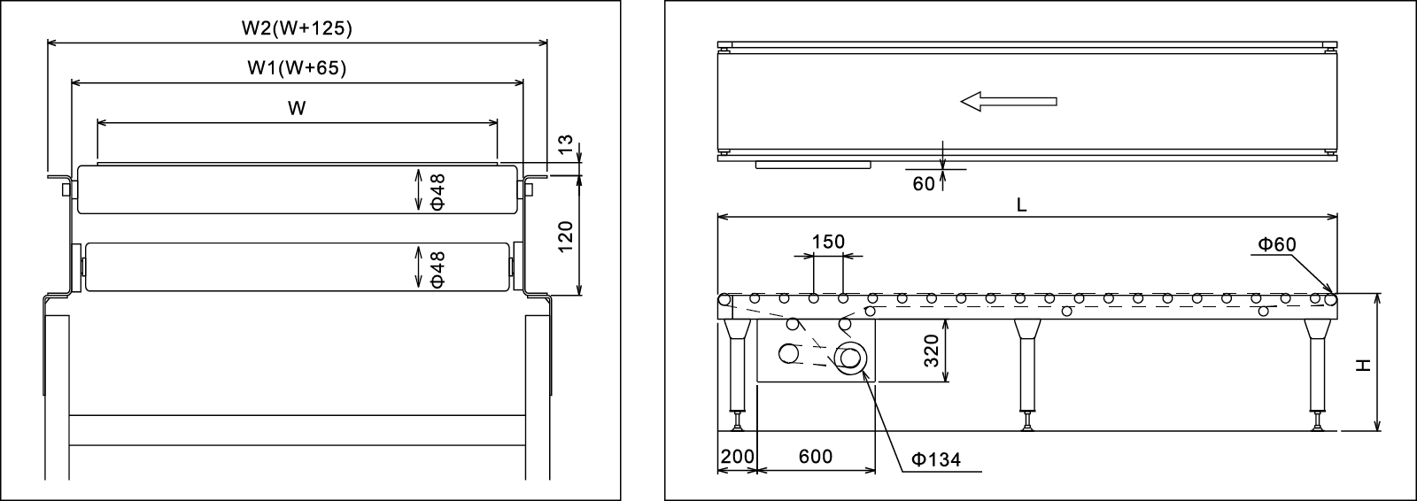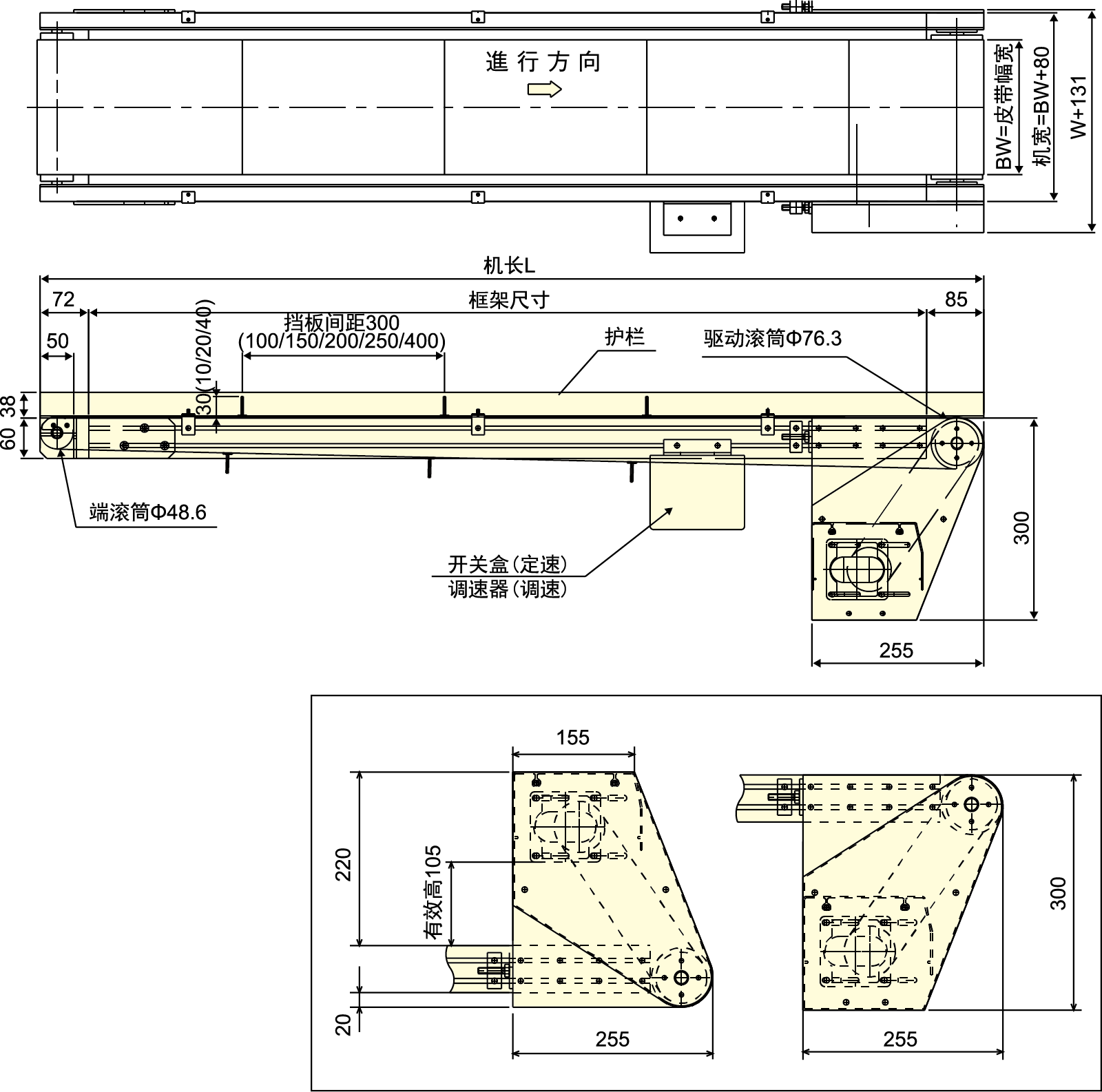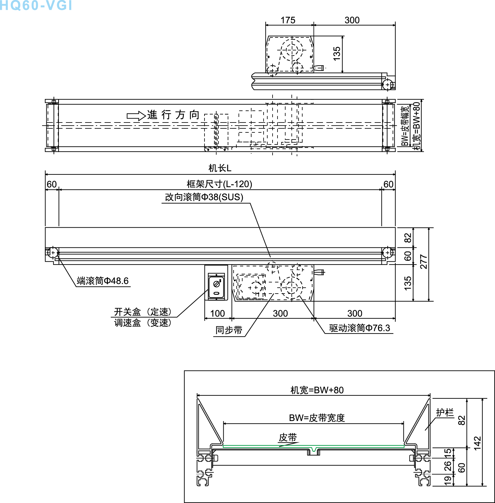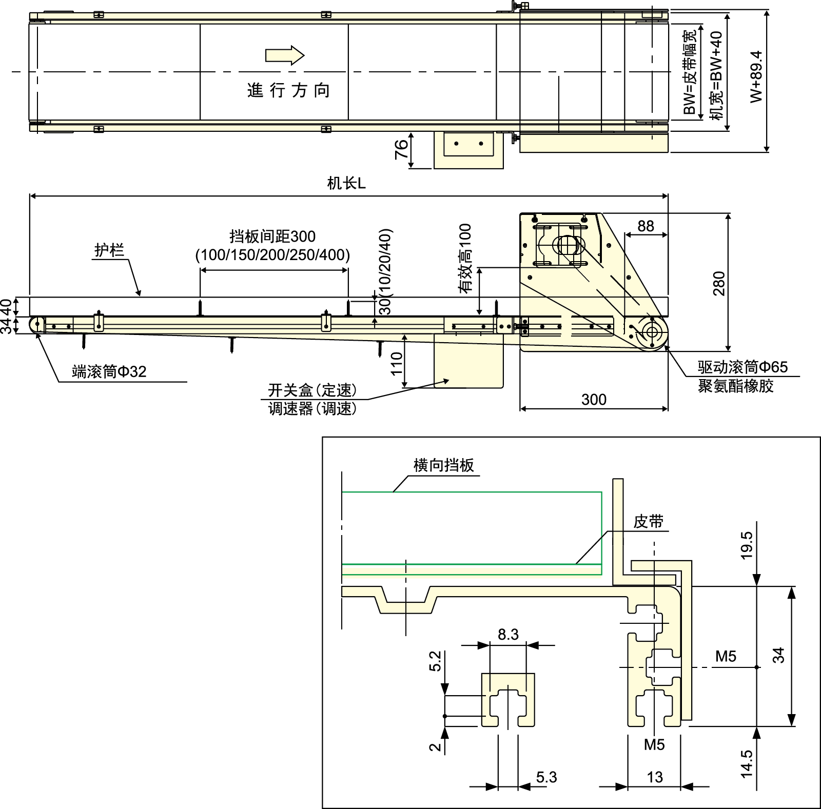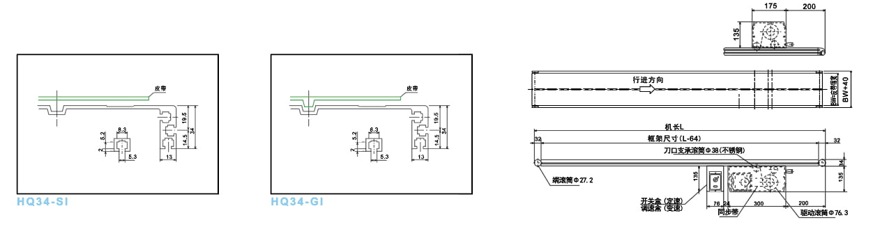 ● 이것은 표준 34mm 벨트 컨베이어의 표준 유형이며, 드라이빙 센터는 타이밍 벨트로 이동합니다.