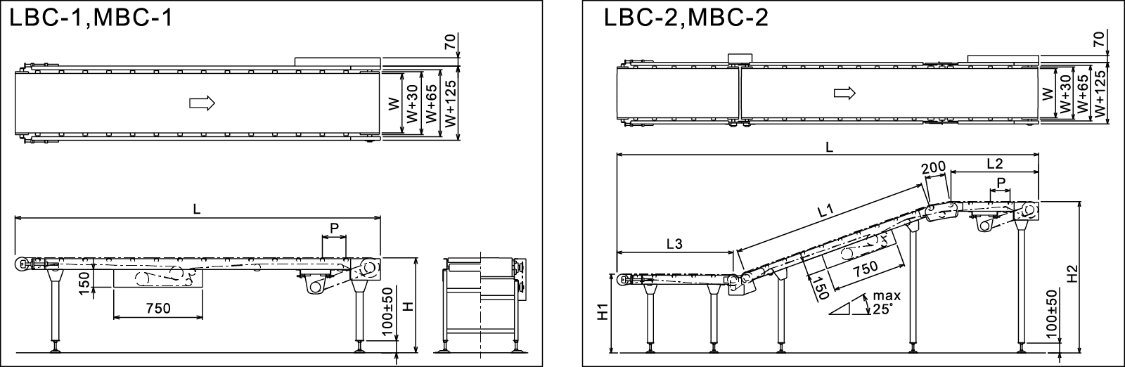 | 컨베이어 너비 | W (MM) | BW 125 | BW 125 | BW 125 | BW 125 |