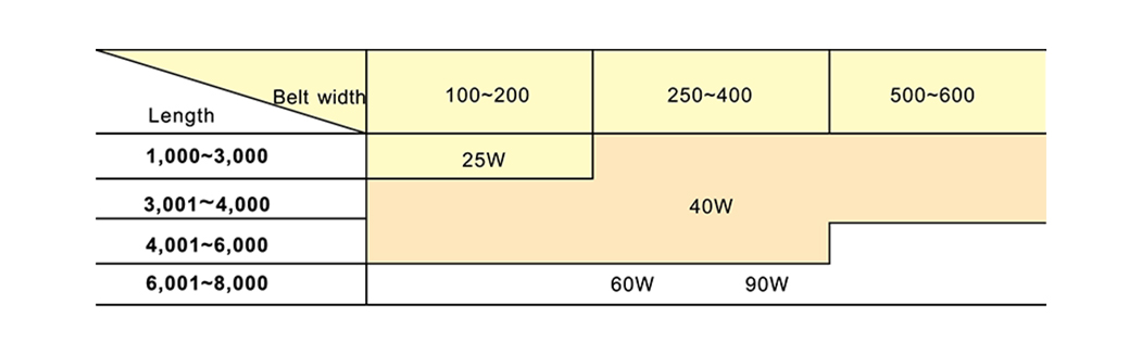 | 전원 \ 벨트 너비 | 100 ~ 500 |