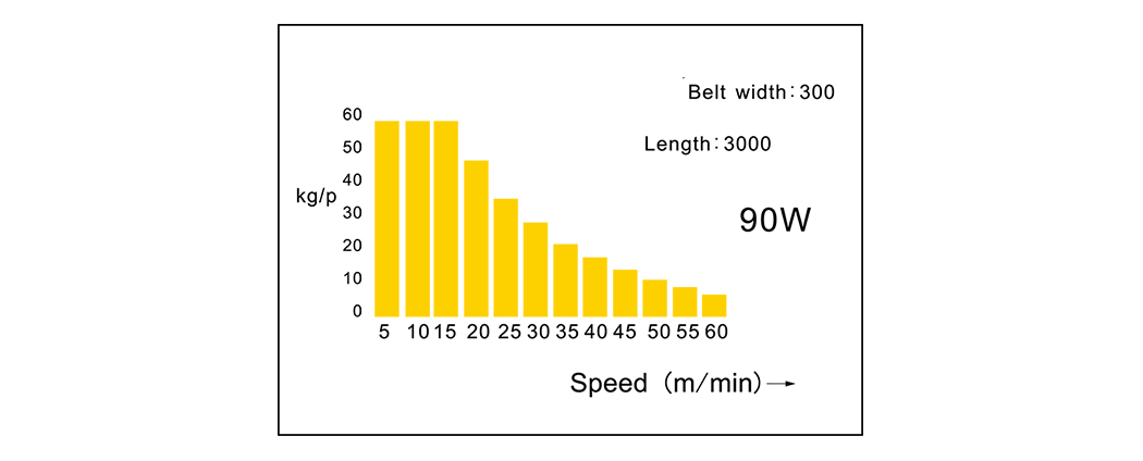 고정 속도의 속도 계산 속도 회전 속도 1500/1800rpm (50/60Hz) 구동 롤러 ∅124, 구동 효율 : 95%
