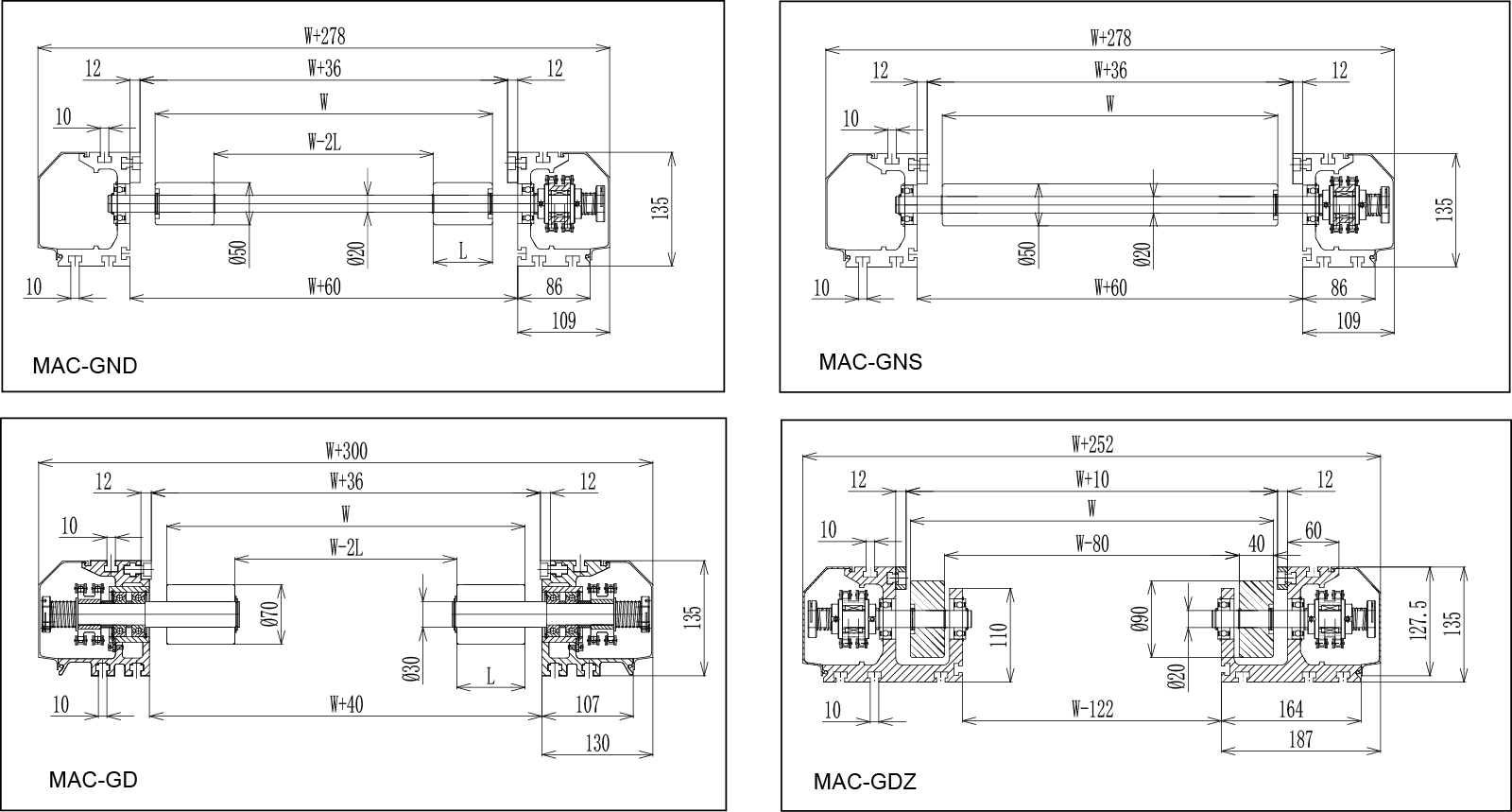 | 유형 | MAC-GND (연속 샤프트 유형) | MAC-GNS (드럼 타입) | MAC-GD (캔틸레버 구조) | Mac-GDZ (헤비 듀티 유형) |