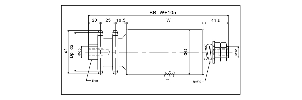 | 유형 | 롤러 크기 | 롤러 너비 | 롤러 재료 | 베어링 | 샤프트 직경 | 라이너 크기 | 스프로켓 | D1 | D2 |