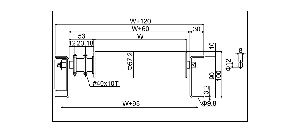 | 보조 롤러 직경 x 두께 x 샤프트 | 57.2 × 2.1 × 12 (60.5x2.3x12) (아연 도금) |