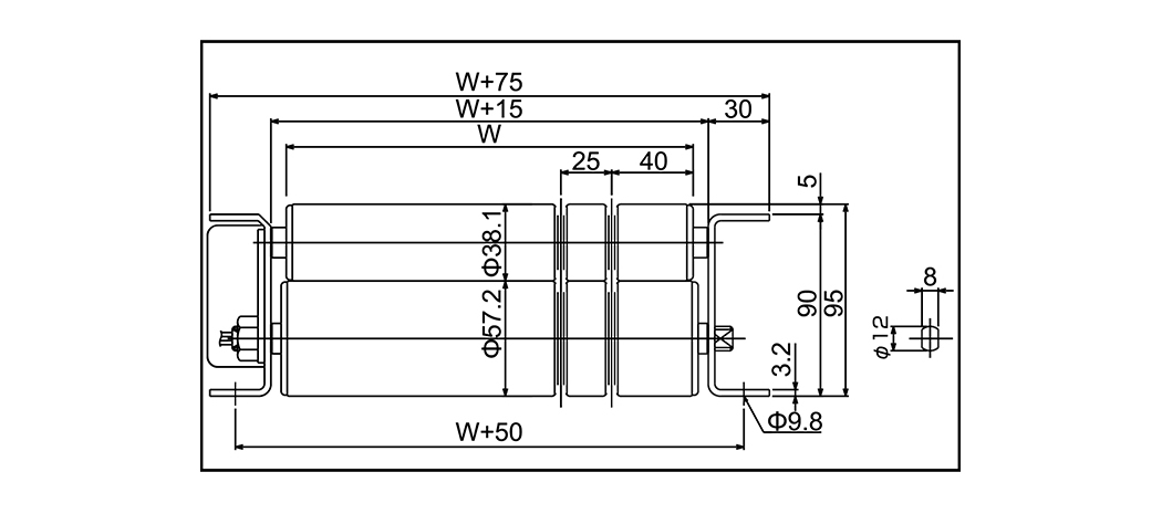 | 보조 롤러 직경 x 두께 x 샤프트 | 57.2 × 1.4 × 12 (60.5 × 2.3x12) (아연 도금) |