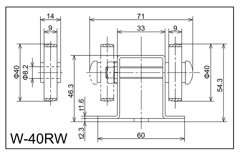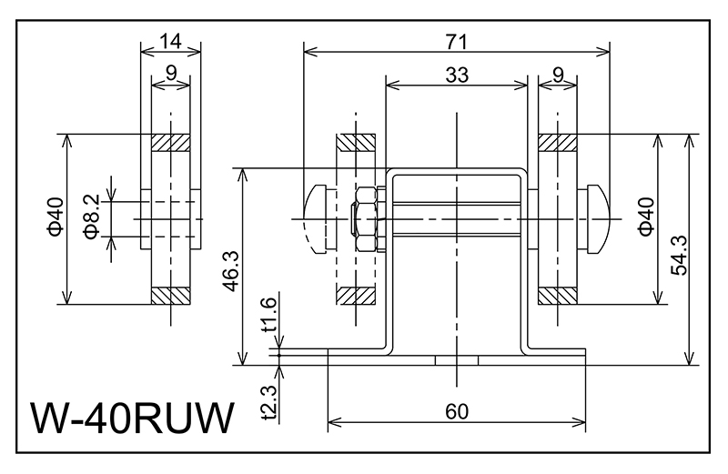 | W-40RUW | 40x9x8.2x14 | M8x55L | 46.3x60x33x71 × 23 | 54.3 | 1800 · 2400 · 3000 | 50 · 75 · 100 · 150 | 30 | 케이 | PU |