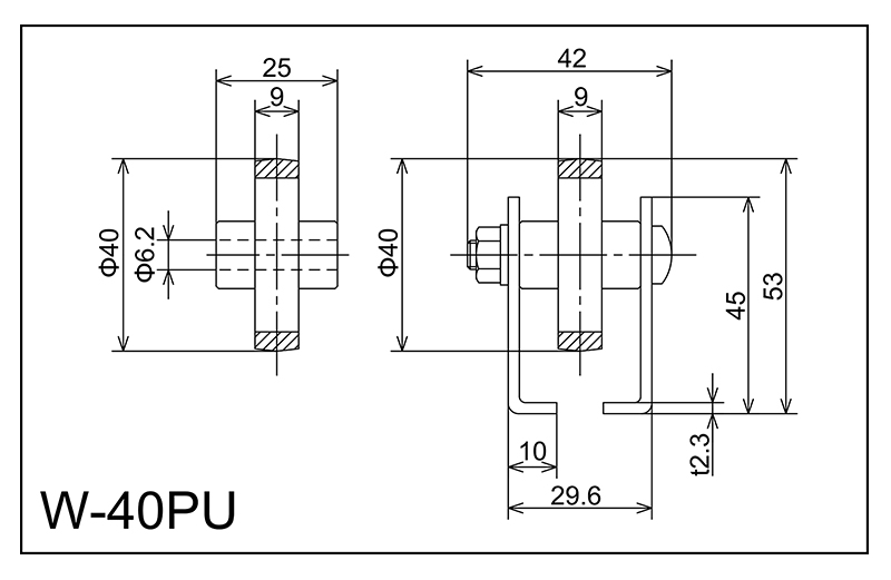 | W-40PU | 40x9x6.2x25 | M6X38L | 45x29.6x10x42x2.3 | 53 | 1800 · 2400 · 3000 | 50 · 75 · 100 · 150 | 30 | 에이 | PU |