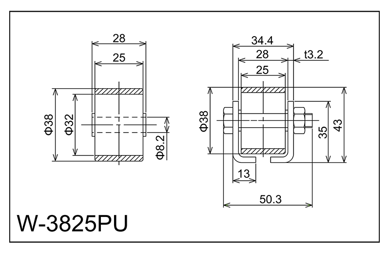 | W-3825PU | 38x25x8.2x28 | M8x48L | 35x34.4x13x50.3x3.2 | 43 | 1800 · 2400 · 3000 | 50 · 75 · 100 · 150 | 50 | 에이 | PU |