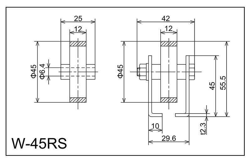 | W-45R | 45x12x6.4x25 | M6X38L | 45x29.6x10x42x2.3 | 55.5 | 1800 · 2400 · 3000 | 50 · 75 · 100 · 150 | 10 | 에이 | NBR |