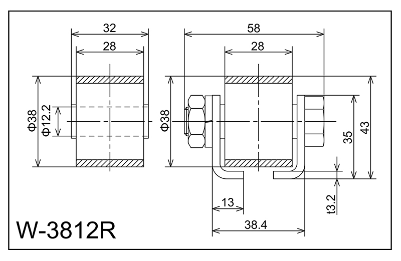 | W-3812R | 38x28x12.2x32 | M12x50L | 35x38.4x13x58x3.2 | 43 | 1000 · 1500 · 2000 | 40 · 70 · 100 | 80 | 에이 | NBR |