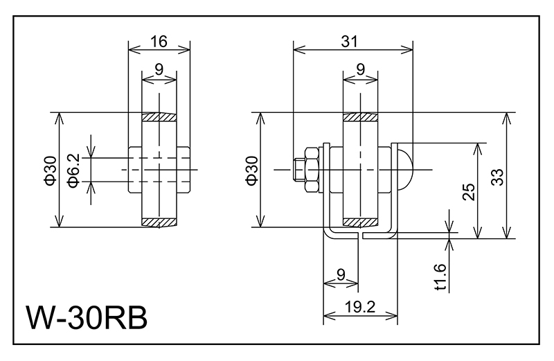| W-30RB | 30x9x6.2x16 | M6x27L | 25x19.2x9x31x1.6 | 33 | 1000 · 1500 · 2000 | 35 | 25 | 에이 | NBR |