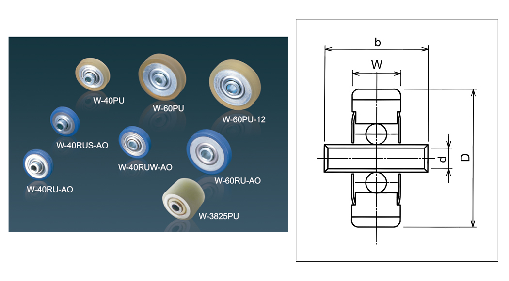| W-36PW | 36 × 9 × 8 × 14 | M8 × 55L | 46.3 × 60 × 33 × 71 × 1.6 2.3 | 52.3 | 1800 · 2400 · 3000 | 50 · 75 · 100 · 150 | 10 | POM |