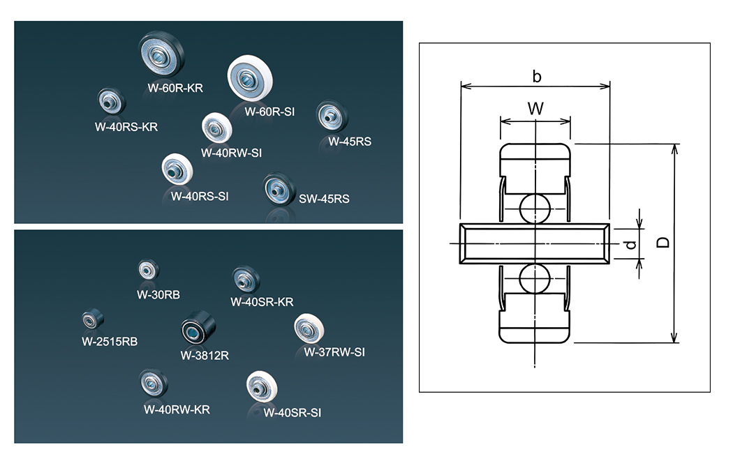 | W-26ps (외부) | 26 × 8 × 6 × 10 | M6 × 20L | 25 × 28 × 9 × 24 × 1.6 | 30 | 1000 · 1500 · 2000 | 30 · 35 | 30 | POM |