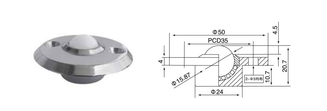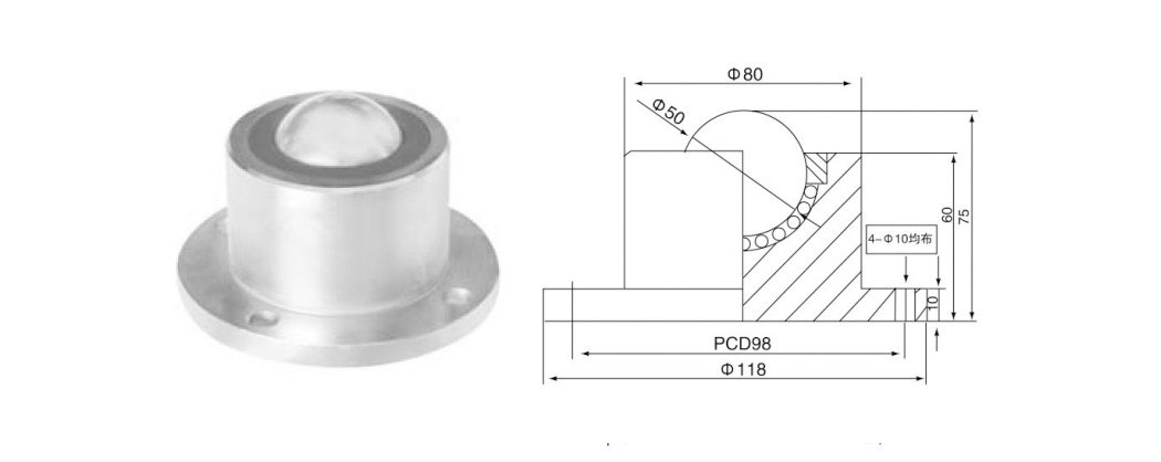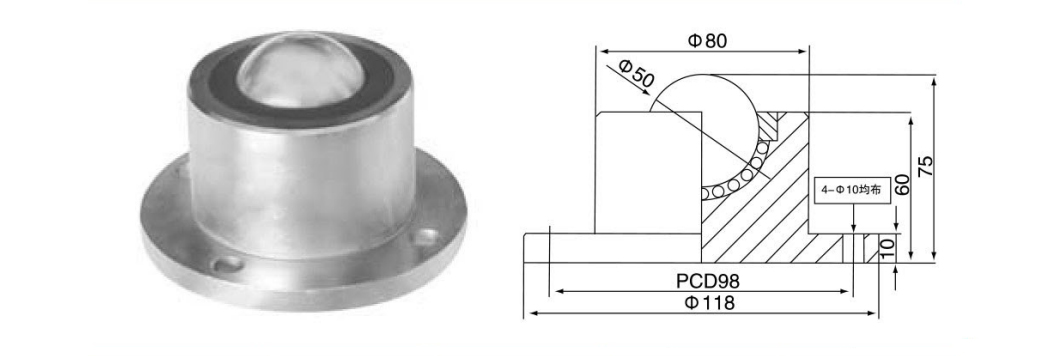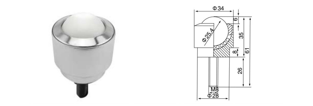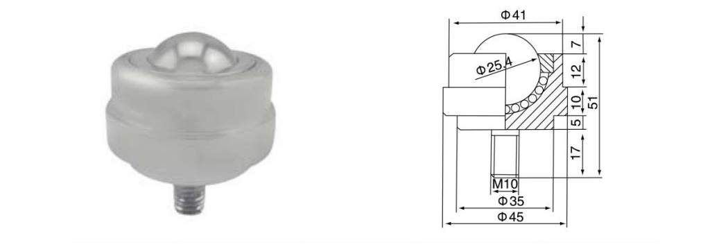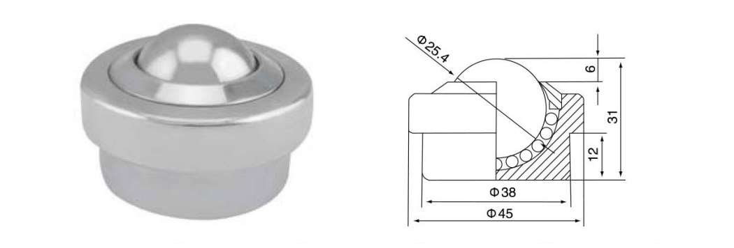 유니버설 볼은 범용 운송 공, 유니버설 볼, 스틸 볼 휠, 황소 아이 베어링 등이라고도합니다. 그것은 롤링 유연성의 성능을 가지고 있으며 작업 플레이트, 재료 상자 및 기타 물체를 매우 유연하게 움직일 수 있으며, 외관은 직원의 노동 강도를 크게 줄이며, 전자 장치, 기계, 화학, 식품, 숲, 마이닝, 서적, 슈퍼마켓, 고무 및 기타 산업에 대한 모든 종류의 범용 볼과 같은 정적 및 역동적 인 전송 시스템에 적합합니다. 전송 시스템, 공급 시스템, 가공 시스템, 가공 기계 및 포장 기계 보조 장비에서 널리 사용됩니다 .